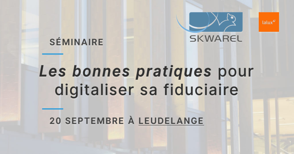 Lors de ce séminaire, Philippe Denis fondateur de l’application web Skwarel vous présentera les solutions pratiques à mettre en place pour devenir une fiduciaire moderne : stratégie de prix, les bonnes pratiques pour digitaliser votre bureau et comment motiver vos clients ainsi que vos collaborateurs. Ce séminaire s’appuie sur des cas pratiques vécus par la fiduciaire 100% digitalisée créé par Philippe Denis à Bruxelles : Comptaline.